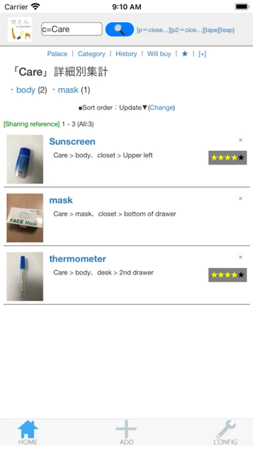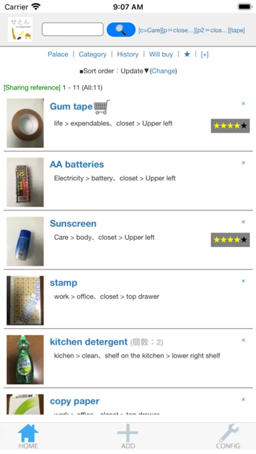 Functions such as character string search, storage location search, category search, history search, purchase schedule display, and sorting are also excellent.