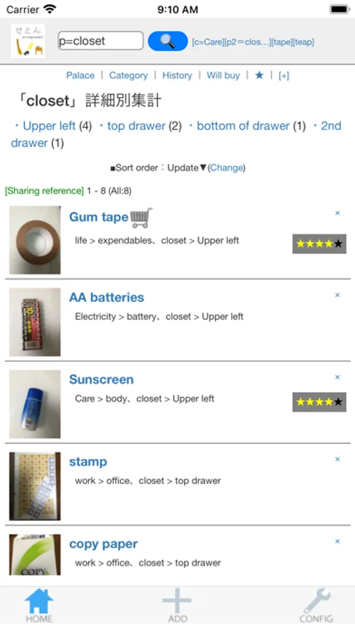 You can record where you moved items and the fixed position, so you can store items that are messed up by someone other than yourself with confidence.