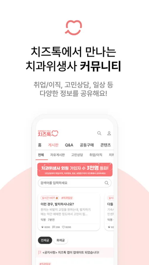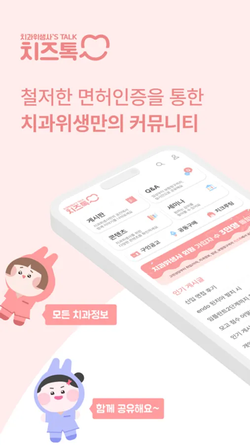 ◇ 치즈톡은 철저한 면허인증 시스템으로, 치과위생사와 치위생(학)과 학생들만 이용 가능한 서비스입니다.