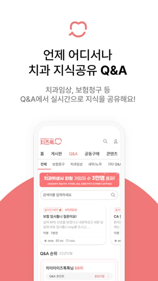 고민상담부터 임상, 보험청구, 시험준비 등 다양한 정보를 실시간으로 공유하고 소통하세요!