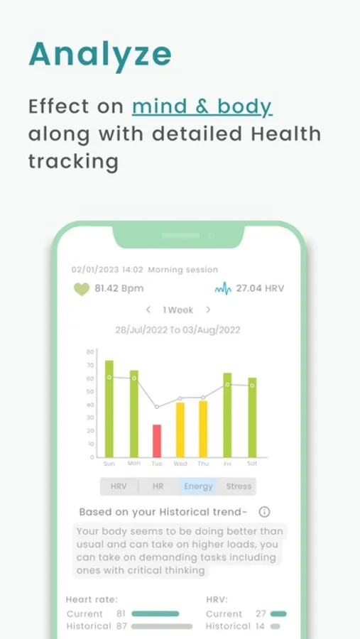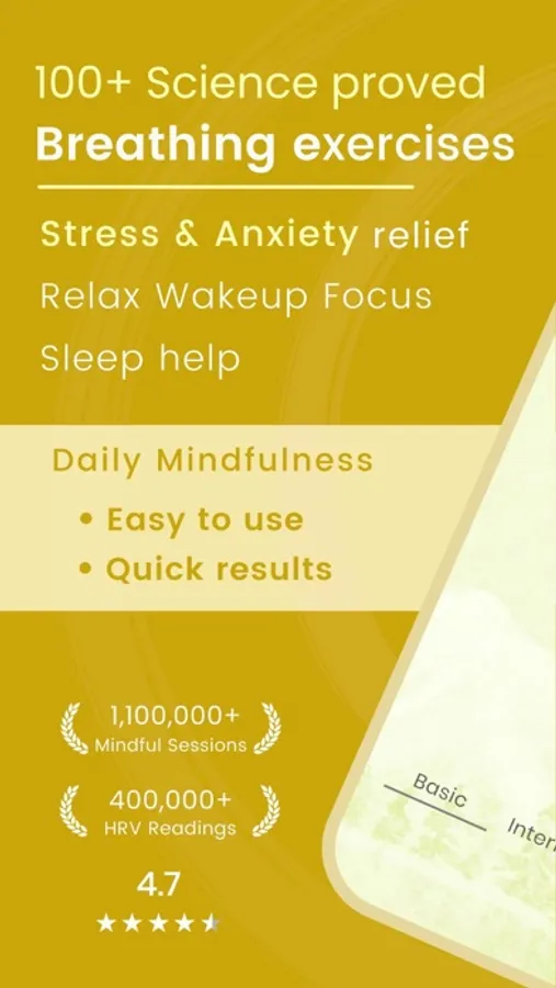 Breathing exercises from ancient traditions backed by modern research + in-built HRV heart rate monitor for stress & health analysis.