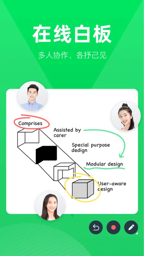 互动学堂是一款具备强互动性的在线直播App,支持老师/学生两个角色使用。学生可随时上麦与老师交流,互动白板、协同画笔工具、PPT文档、聊天室互动等,多样的形式展示课堂内容。