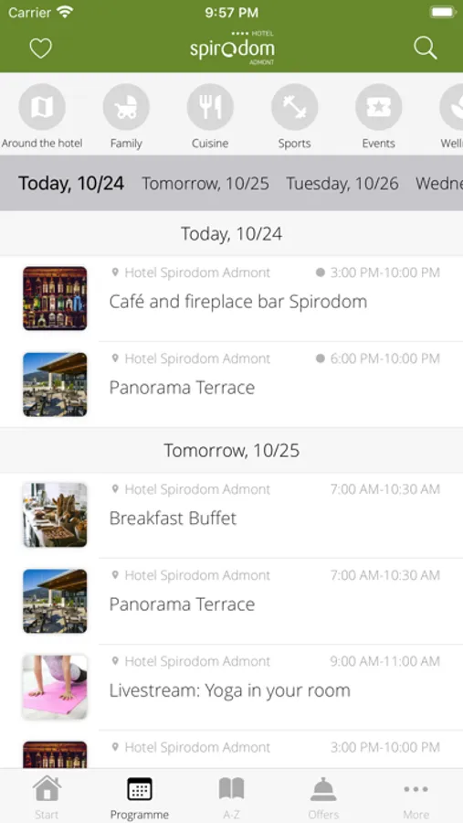 Filter by different interests such as wellness, sports & active program, golf or culture. Put together your own program from our activities. This way, the Spirodom app offers content tailored to your personal needs.