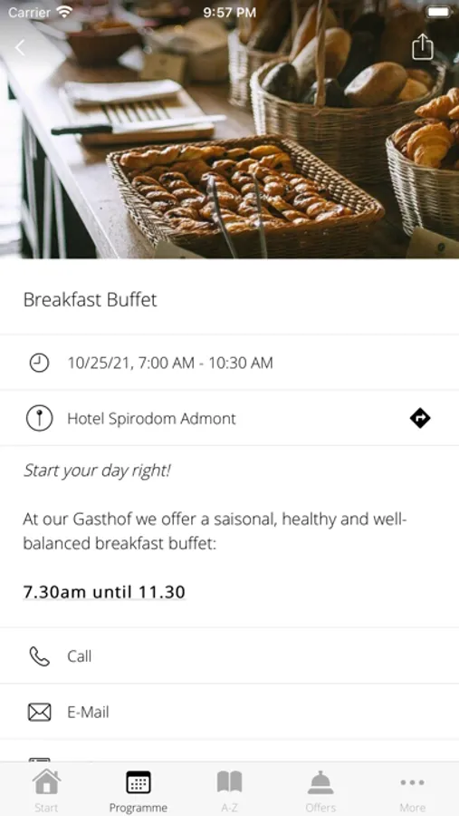 Important standard information about the Spirodom, such as location and directions as well as opening hours of the restaurant and reception, are prepared for you in the app. In addition, you can use the app to quickly find all the places and facilities in the hotel and its surroundings.