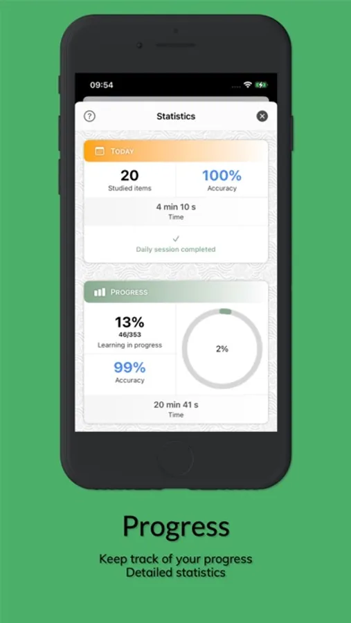 • Follow your progress thanks to the smart lists. Review difficult elements or check your last errors.