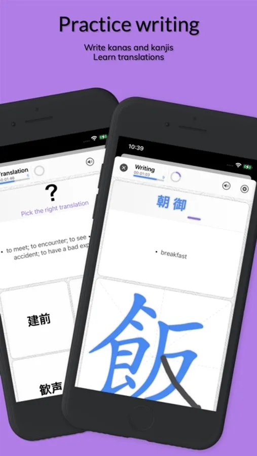 • Practice and learn to translate your kanjis and words from Japanese into English or from English into Japanese.