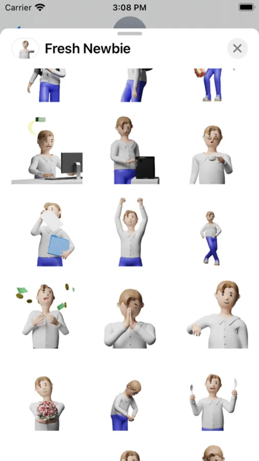 "Fresh newbies man" are emoticons for office workers and emoticons that can be used freely in group chat rooms of companies.