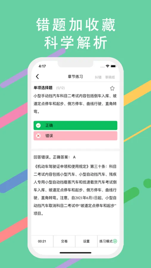 驾照考试题库是一款随时随地可用的智能高效刷题软件。考生可通过设置备考目标,快速开启高效提分计划。同时我们拥有超大型在线题库,主要功能包括章节练习、随机练习、高频考题、历年真题,模拟考试等多种形式,让学生边学边练,达到进一步巩固学习效果的目的。在考前冲刺阶段还有考前模拟试题,帮助学员模拟实战,把握考试精髓,增加考试通过率。