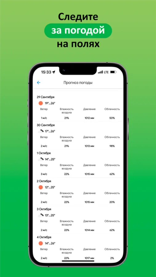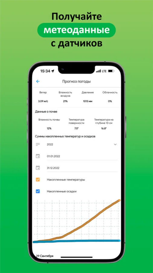 Получайте метеоданные с полей: прогноз погоды и расчет накопленных показателей. Подключите собственные метеодатчики и получайте самую актуальную информацию о погоде.