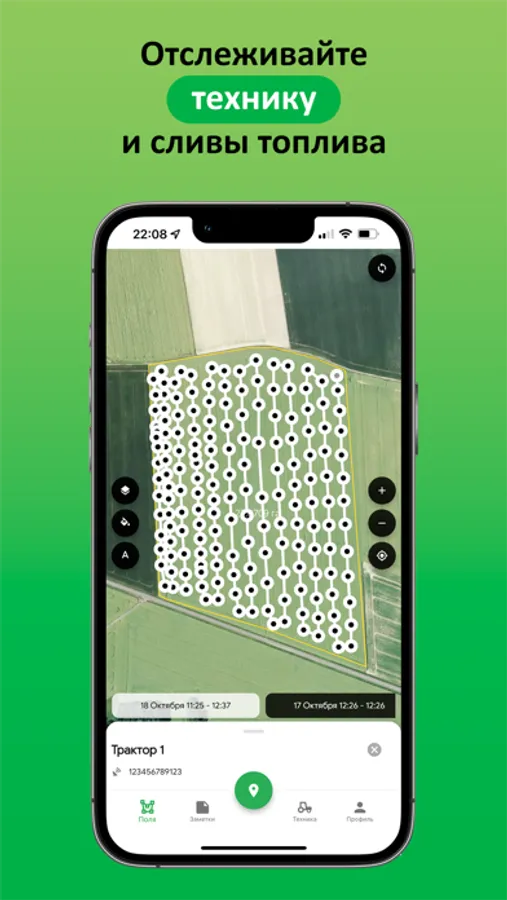 Получайте уведомления о проблемах с хозяйством прямо на свой смартфон: выезд техники за границу территории, сливы топлива и изменения погодных условий.