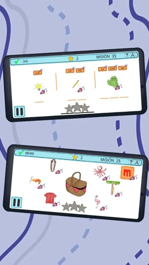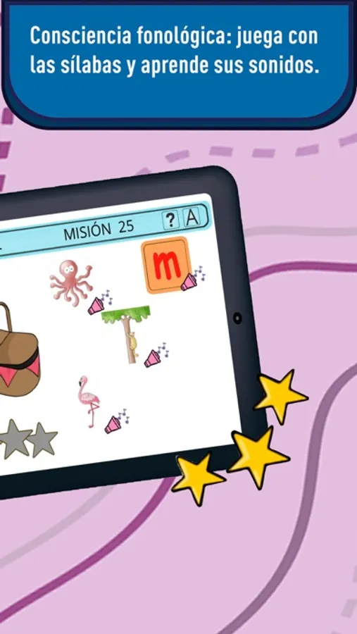 Hay más de 100 niveles por idioma y 14 tipos de actividades distintas, a través de las cuales se trabajan aspectos como el reconocimiento oral y escrito de las grafías, el reconocimiento de los sonidos y sus diferencias según el lugar que ocupan, la atención, la memoria, el vocabulario y la escritura