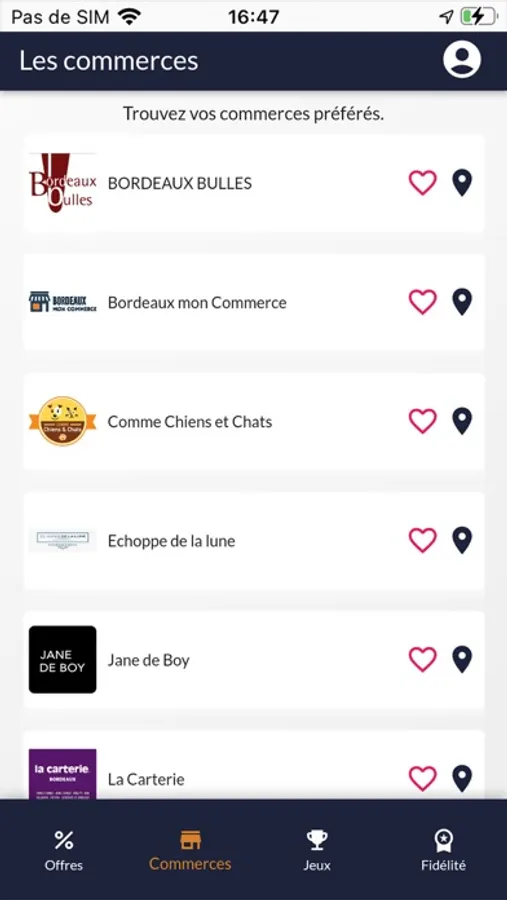 Bordeaux mon commerce est l’association fédérant l’ensemble des commerces de Bordeaux et ce quel que soit leur typologie : indépendants, enseignes, franchisés, tout type de commerce. Elle souhaite, avec l’aide de ses partenaires, développer une application qui permettra aux commerçants bordelais de communiquer directement avec leurs clients. Il est apparu qu’une solution simple et efficace devait être développée : une application qui permettrait aux consommateurs de recevoir et connaître tous les bons plans que proposeraient leurs commerçants locaux. Cette technologie à base de pushs préalablement acceptés et de géolocalisation ne demande pas obligatoirement de données personnelles (en dehors de jeu), simplement à terme un choix préalable de leurs centres d’intérêts (alimentaire, déco, services, etc…).