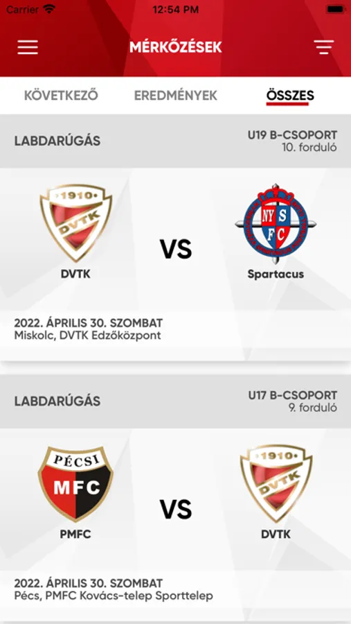 A hírek mellett az alkalmazásban természetesen megtalálhatók a DVTK különböző bajnokságokban szereplő csapatainak eredményei, programja, a tabellák, illetve a diósgyőri sportolók a profiktól az akadémistákig.