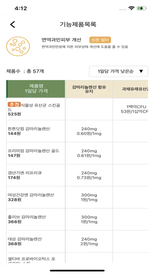 건강기능식품의 기능성, 원료, 함량, 가격 정보 등을 스마트하게 비교하고 구매할 수 있도록 다양한정보를 제공하고 있습니다.