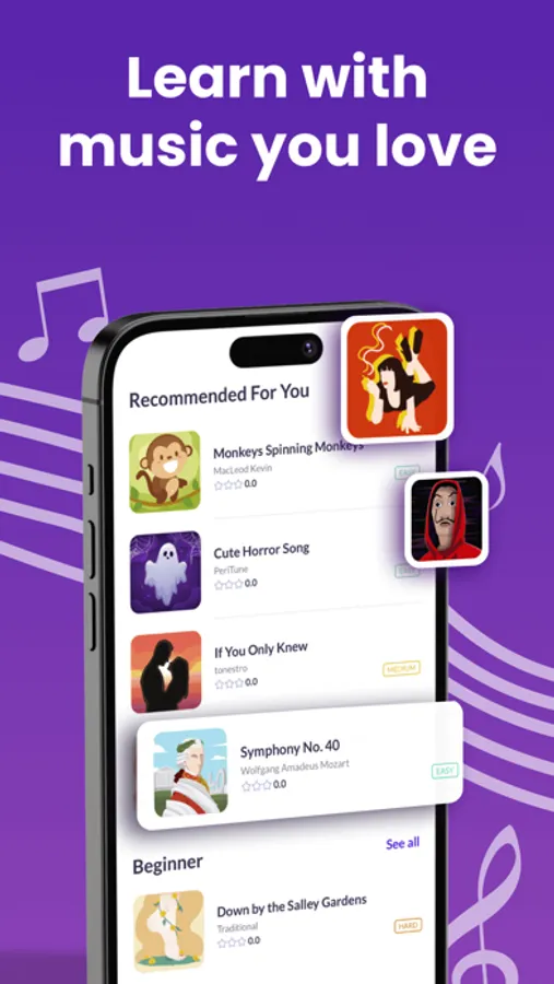 You will learn violin songs with the interactive sheet music library in no time!