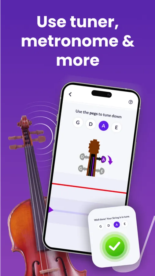 tonestro Violin Lessons app has you covered! Our interactive sheet music library, fingering tutorials, more complex exercises, or faster melodies are there for you! Such as a chromatic violin tuner, or metronome!