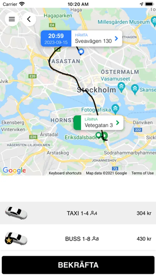 Du får alltid fast pris på dina resor och vi meddelar dig både när bilen är på väg och när den är framme hos dig. Du kan också följa din bil direkt på kartan!