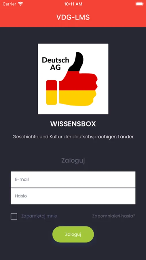 Mobile App zum Projekt DeutschAG. Hilft mit drm Erlernen der deutschen Sprache, Kennenlernen der deutschen Minderheit in Polen, der deutschen Geschichte, Landschaft, Kunst und Kultur.