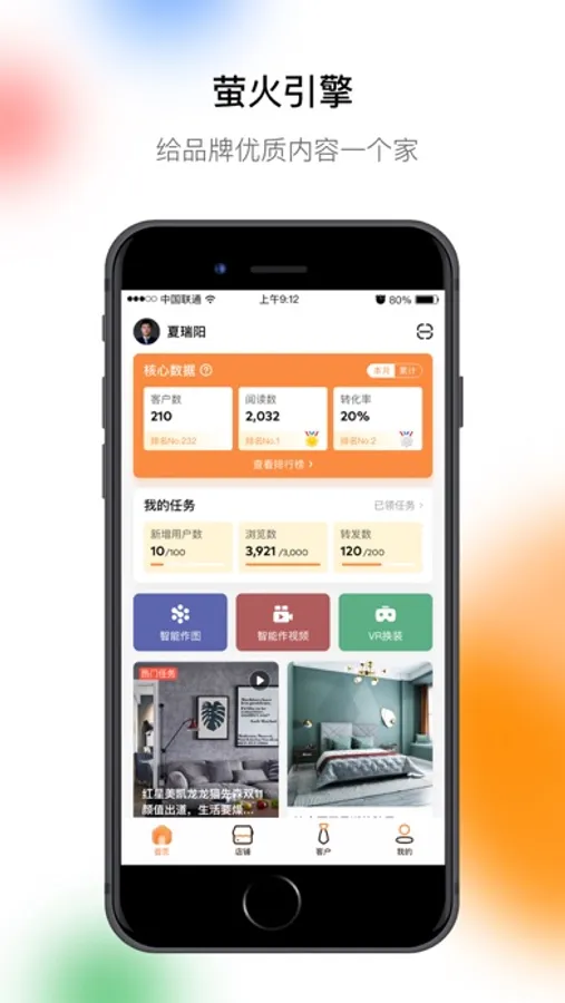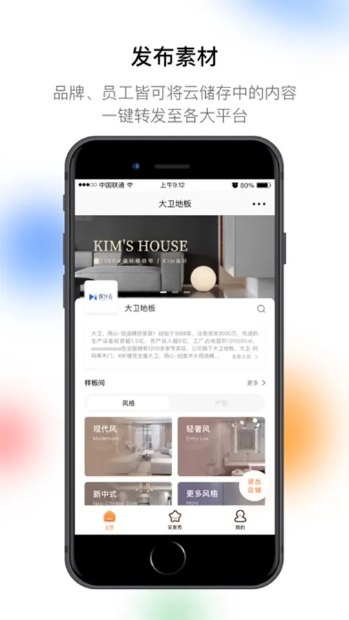 导购使用萤火引擎App,将品牌方使用内容后台产出的内容,转发到微信,通过朋友圈或者小程序的形式分享。