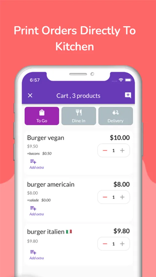 My Cash Register for fast-food allows you to quickly take customers orders and print them directly in Kitchen.