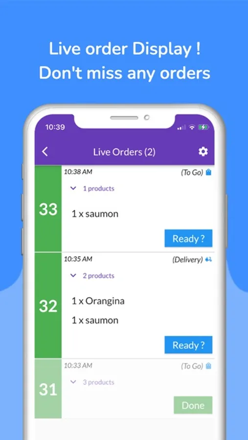 Orders receipts are numbered, dated, customizable and everything is clear in the kitchen for a take-away or To Go command.