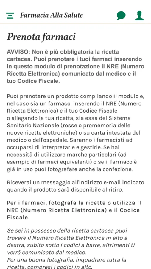- Anticipo ricetta per prenotazione farmaci con notifica di disponibilità per il ritiro in Farmacia