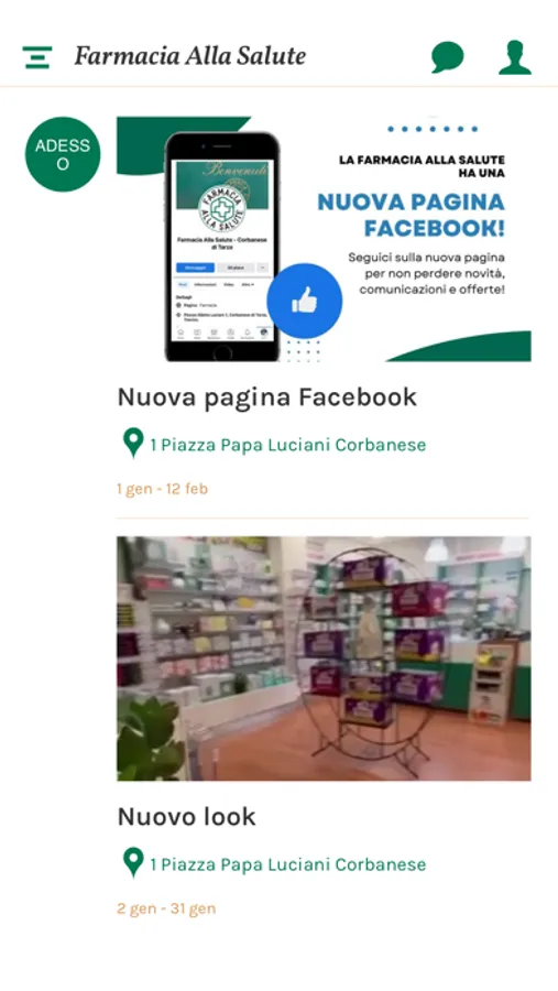 Verrai informato sulle novità, sulle ultime offerte e promozioni, sulle giornate a tema e sugli incontri in Farmacia con i nostri professionisti.