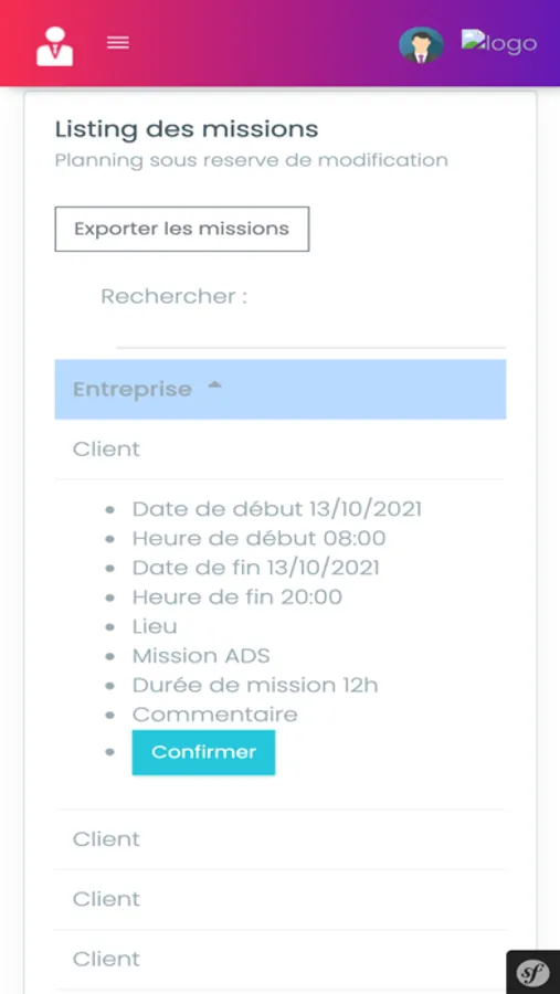 Application de gestion de mission de sécurité avec calcul des horaires
