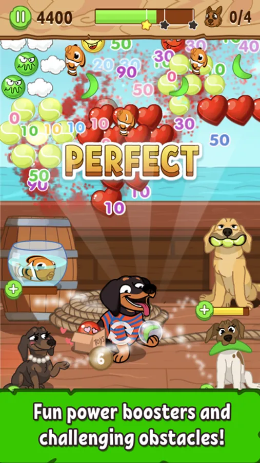 Challenge yourself with hundreds of levels in varying difficulty, and with plenty of tricky obstacles! But don’t worry, many of your dog friends will offer you a helpful boost along the way! And every level you beat will win you gold buttons you can use to get even more boosters! Can you pass all levels and become the dog bubble pop champion?