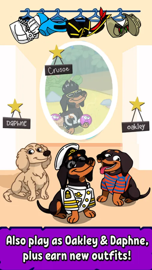 Unlock fun new character outfits as you progress, such as 'Captain Crusoe', or ‘Crusoe the Pirate Dog’. You'll even be able to play as his sister Daphne or Oakley!