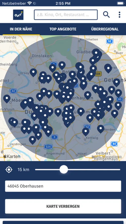 - Lassen Sie sich per Routenplanung direkt zum EWR*PLUS CARD-Partner lotsen.