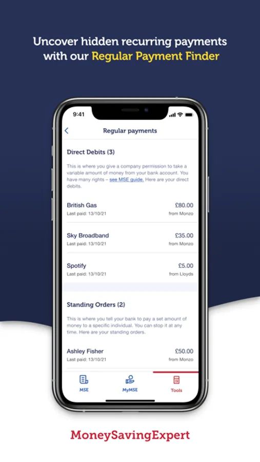 You can also try out the early versions of new app-exclusive features by connecting your bank account to the MSE app. Our new Regular Payments Finder tool analyses your recurring payments and helps you to weed out the money wasters, while MyMSE looks at your spending and what interests you to give you daily directions and help you cut your bills.