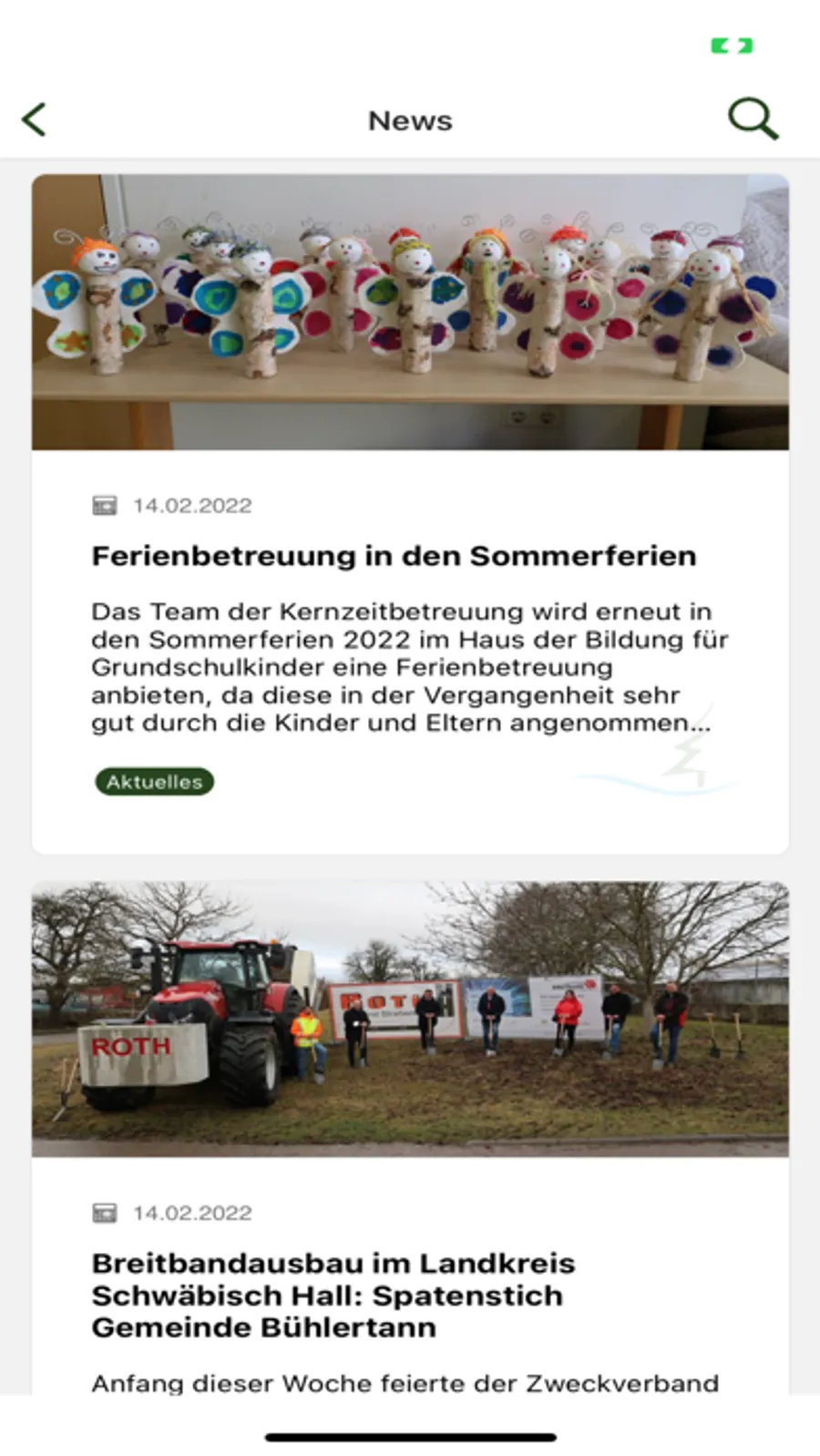 Mit dieser App erhalten Sie einen schnellen und einfachen Zugriff auf aktuelle Meldungen der Gemeinde Bühlertann. Darüber hinaus können Sie sich über Veranstaltungen und andere Termine informieren und diese direkt in Ihren eigenen Kalender übernehmen. Informationen aus dem Rathaus erhalten Sie mittels Push-Nachrichten, deren Empfang Sie über die Auswahl einzelner Kategorien selbst steuern können. Bleiben Sie stets up to date – mit Ihrer Bühlertann-App.