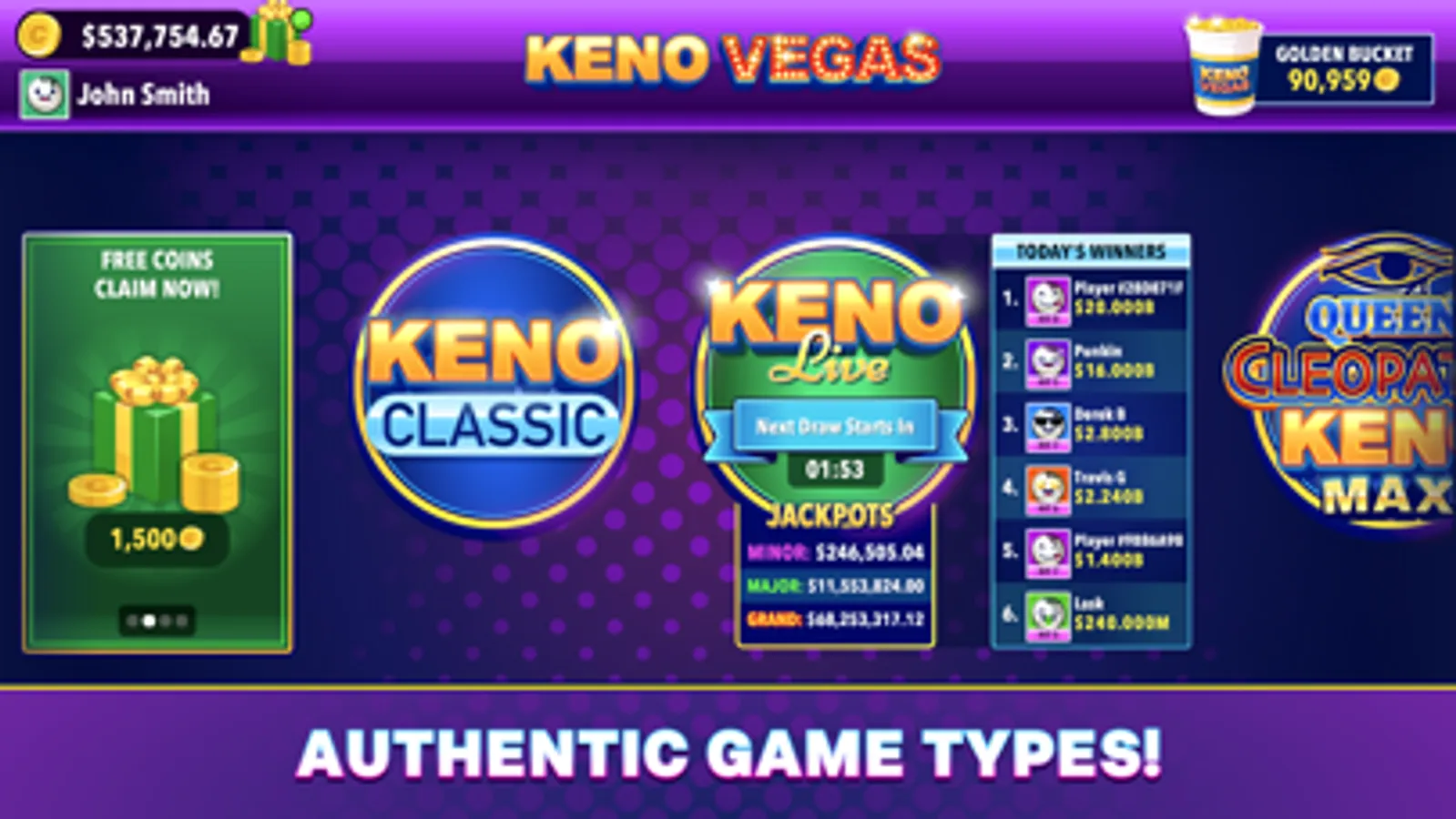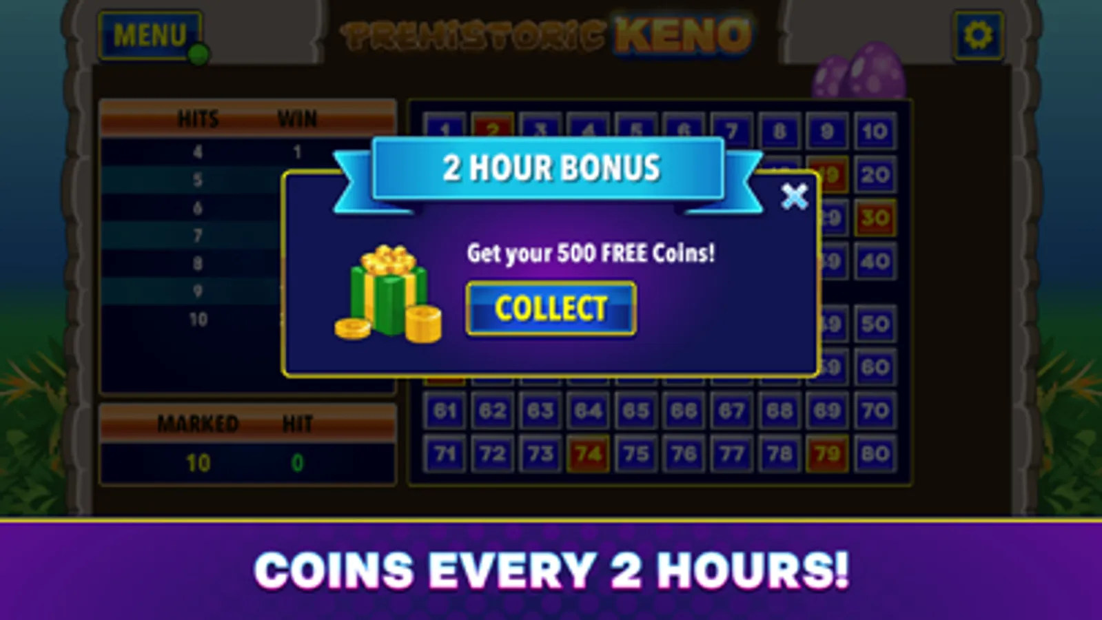 Play keno anytime, anywhere - just as you would in a Vegas casino. Download and play for free with bonuses every 2 hours and free daily Coins.
