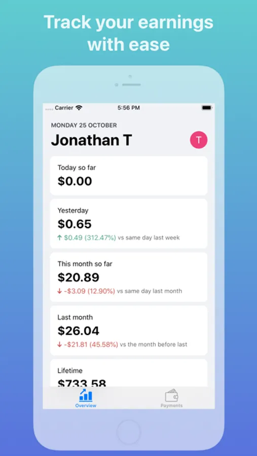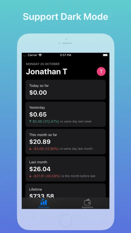 - Revenue reports for today, yesterday, this month, last month and lifetime.