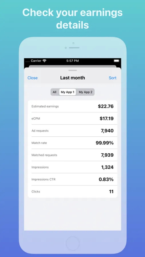 AdsMoney for AdMob allows you to keep track of your app earnings from Google AdMob.