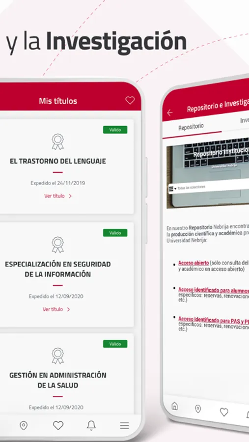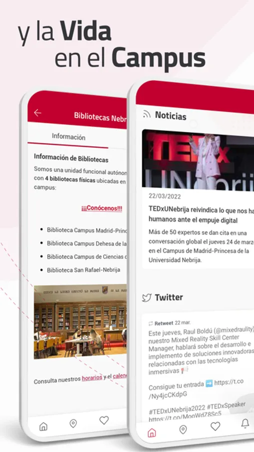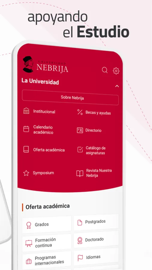 Esta es la App oficial de la Universidad Nebrija: accesible, libre de publicidad y con funcionalidades para todos: estudiantes, docentes, investigadores, funcionarios, alumni, titulados, aspirantes y familias e invitados. Cada uno encontrará lo que busca en su perfil: