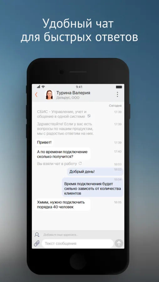 • Удобный чат — мгновенные ответы на сообщения пользователей с