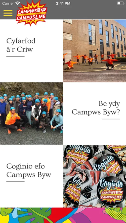 Y diweddaraf am ein digwyddiadau a’n ymgyrchoedd – i gyd mewn un man cyfleus. Gellir hefyd defnyddio’r ap i gysylltu gyda gwasanaethau angenrheidiol eraill y Brifysgol.