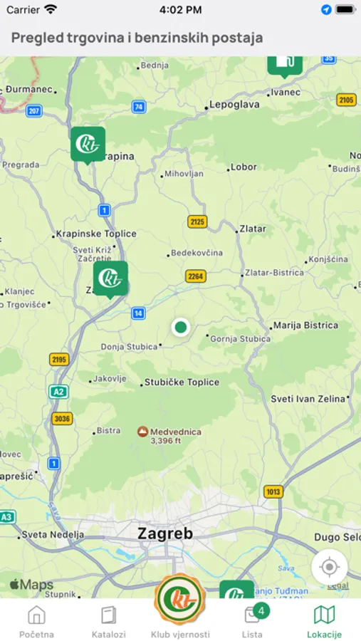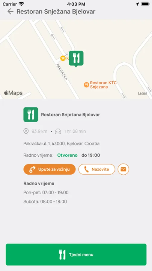 - popis svih lokacija trgovina, ugostiteljskih objekata, poljoljekarni, benzinskih crpki i smještajnih kapaciteta
