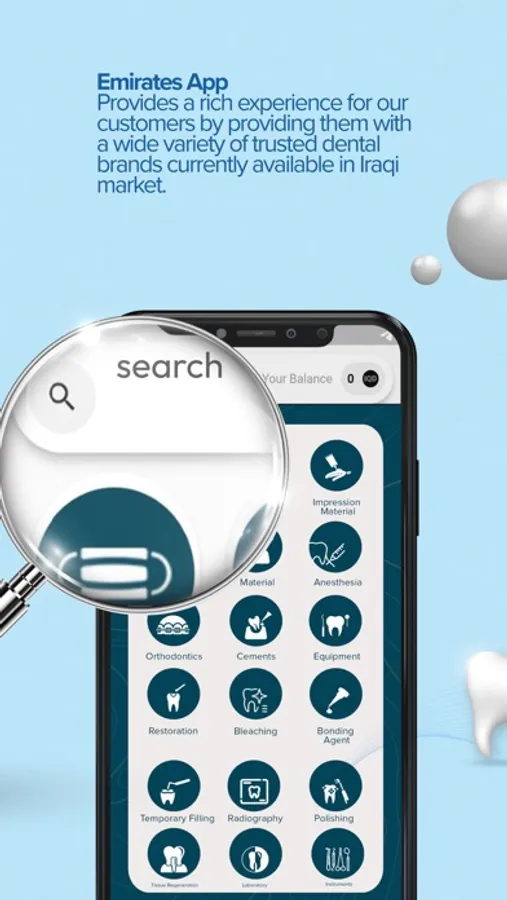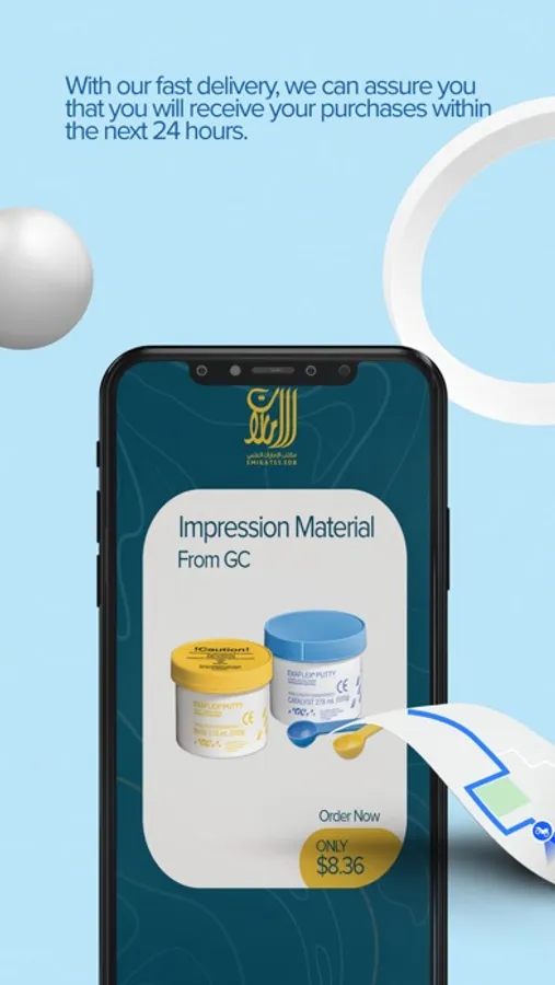 Emirates APP is the first online wholesale shopping Mobile Version that provides Iraqi dental clinics with a wide range of dental materials and dental care products. Our delivery service is fast and reliable that cover all over Iraq, and the payment is obtained upon delivery or by credit card.