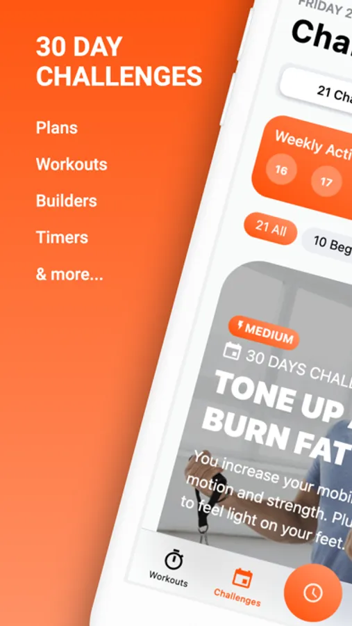 - A custom workout timer that guides you through workouts with intuitive audio and visual cues