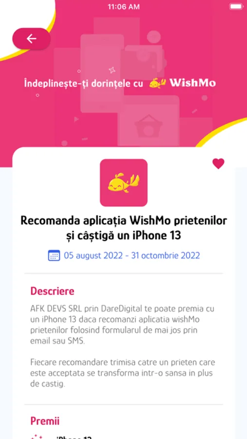 WishMO is an app that organizes promotions and raffles for its users, by using simple and very user-friendly mechanics. It is an application in which the Terms & Conditions of participation are directly listed, in order for the users to know everything they need to before entering promotions, so that the process can be easily followed by them. The app has the objective to entertain its users, by helping them win as many prizes as possible.