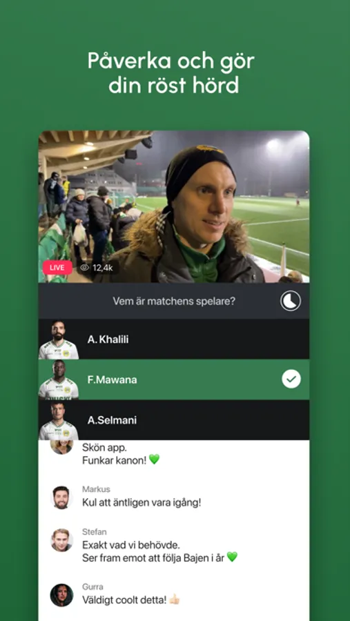 Supportrarna kommer kunna vara delaktiga i live-evenemanget på flera olika sätt som omröstningar eller frågesporter. En app för att strömma och chatta fotbollsrelaterat innehåll.