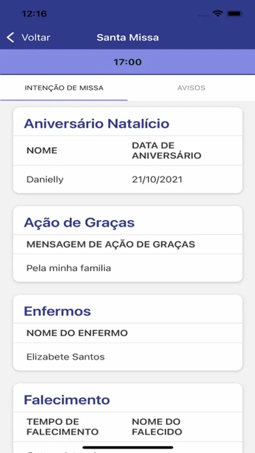 Este aplicativo é de uso exclusivo da equipe litúrgica para leitura das intenções de missa e avisos paroquiais.
