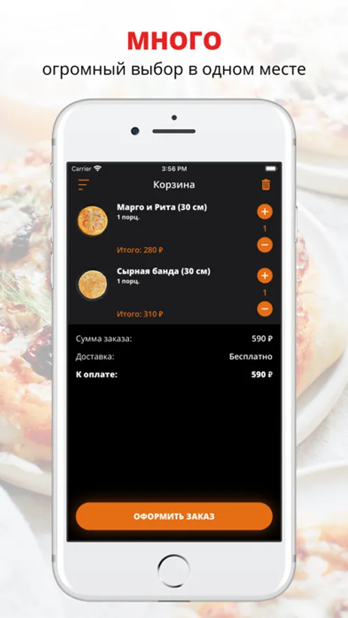 Скачивайте наше приложение, оформляйте заказ и наслаждайтесь любимой едой, где бы Вы ни были! Приятного аппетита!