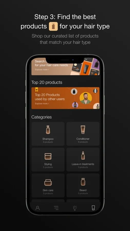 In the product search section you can discover the best products for you, you can search by product type (shampoo, conditioner, etc), or by brand. You can view the ingredients of each product to see if there is anything you want to avoid, and you can shop for that product through the app.