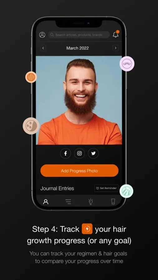 No matter what your goal is, (hair growth, achieve the silkiest curls, grow your beard, restore hair loss, etc) you can track your progress with our progress tracker. It’s a unique camera designed to align all your images in an identical way so you can get identical images. This way you can compare the progress you’ve made.