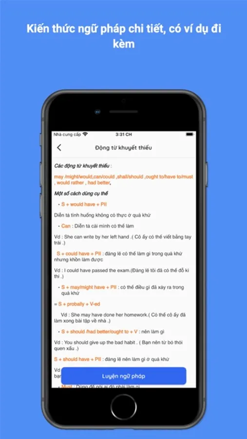 - Muốn biết về ngữ pháp ? Ứng dụng này có đủ, từ cơ bản đến nâng cao & cả bài tập