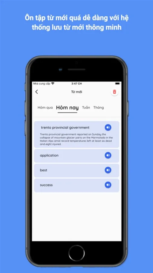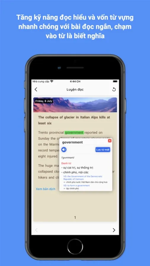 3. Chạm vào từ trong bài đọc là có thể biết nghĩa, có thể lưu từ mới và câu chứa từ đó để ôn luyện mỗi ngày, vốn từ vựng sẽ tăng rất nhanh
